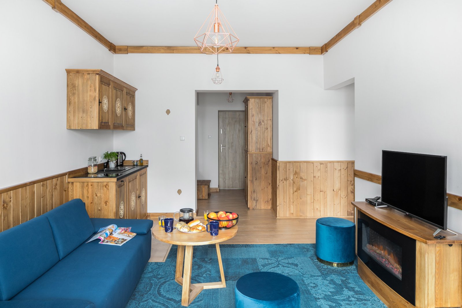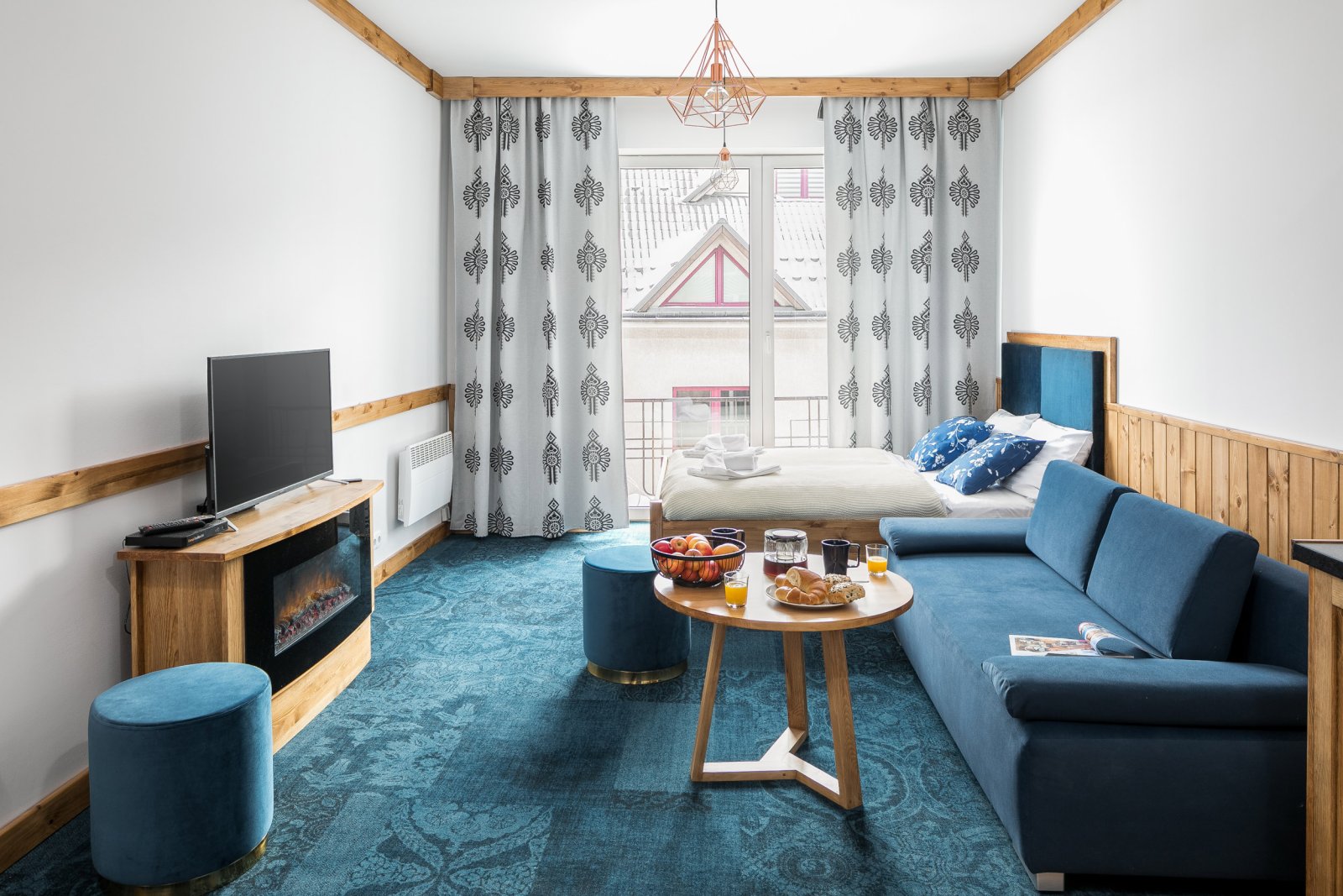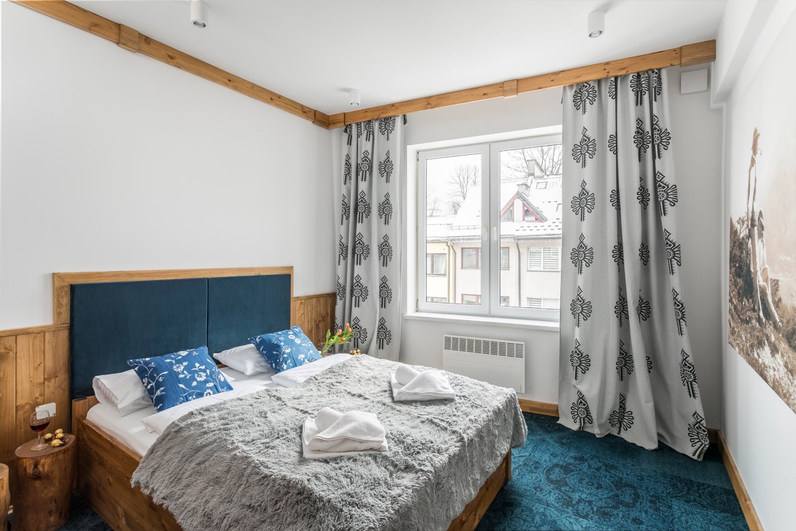 Apartament ten dysponuje oddzielnym wejściem, obejmuje 1 sypialnię - część wypoczynkową oraz 1 łazienkę z prysznicem i suszarką do włosów. Goście mogą przygotowywać posiłki w aneksie kuchennym wyposażonym w płytę kuchenną, lodówkę, toster, ekspres do kawy, zmywarkę do naczyń i przybory kuchenne. Apartament ten dysponuje jadalnią oraz telewizorem z płaskim ekranem i dostępem do kanałów kablowych. Dostępny jest również balkon z widokiem na miasto oraz na zbocza Gubałówki. W apartamencie znajduje się 1 łóżko oraz rozkładana sofa. Apartament - 4 osobowy. Powierzchnia pokoju ok.: 30 mkw.