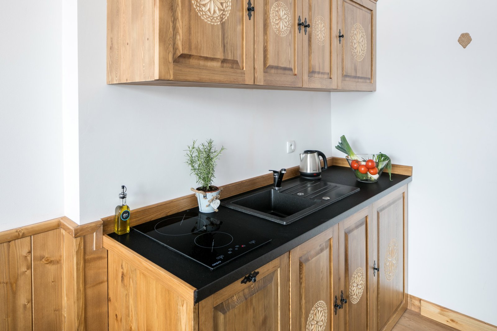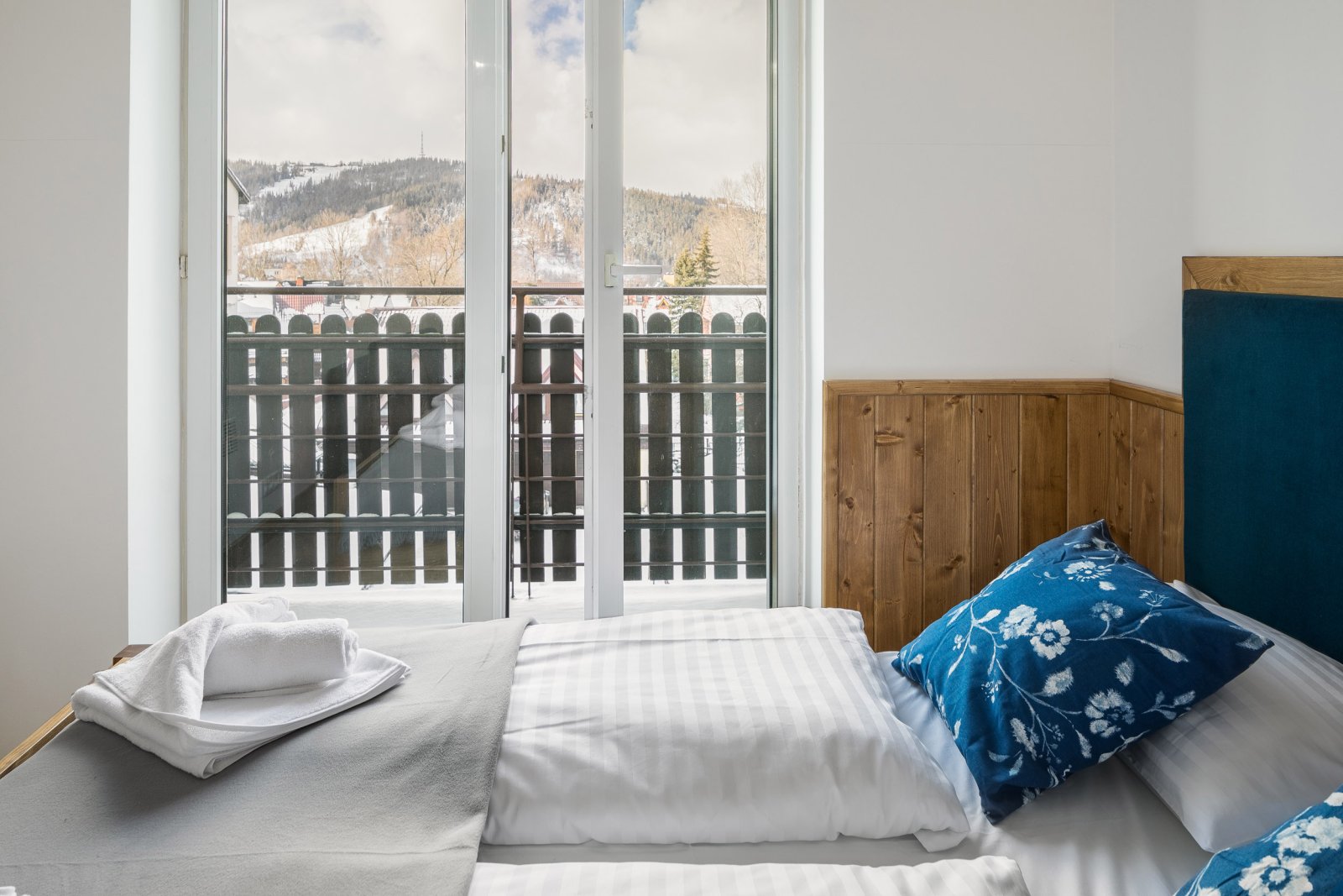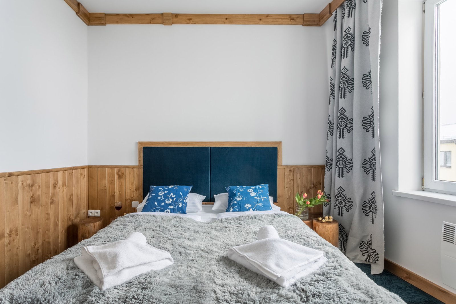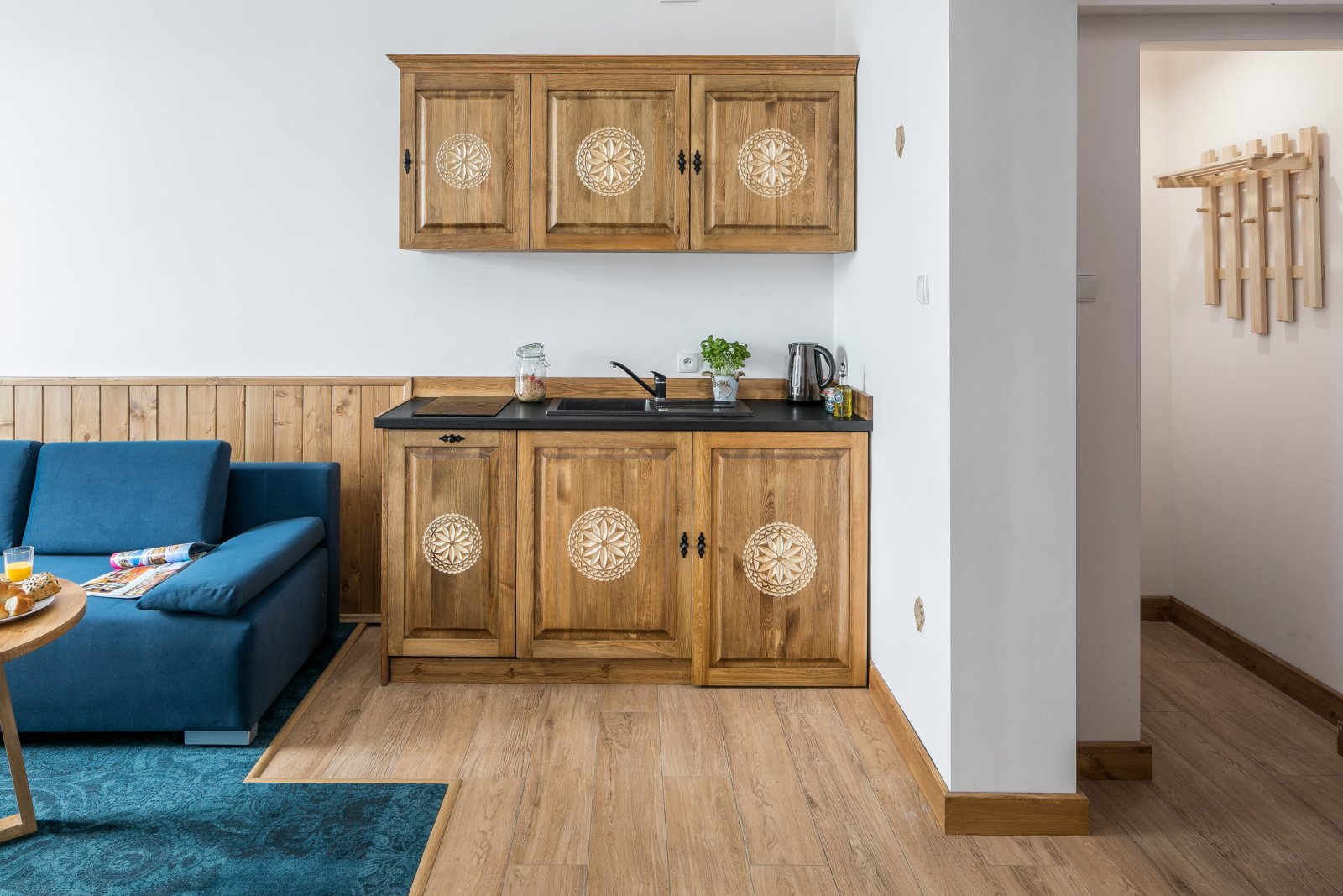 Apartament ten dysponuje oddzielnym wejściem, obejmuje 1 sypialnię - część wypoczynkową oraz 1 łazienkę z prysznicem i suszarką do włosów. Goście mogą przygotowywać posiłki w aneksie kuchennym wyposażonym w płytę kuchenną, lodówkę, toster, ekspres do kawy, zmywarkę do naczyń i przybory kuchenne. Apartament ten dysponuje jadalnią oraz telewizorem z płaskim ekranem i dostępem do kanałów kablowych. Dostępny jest również balkon z widokiem na miasto oraz na zbocza Gubałówki. W apartamencie znajduje się 1 łóżko oraz rozkładana sofa. Apartament - 4 osobowy. Powierzchnia pokoju ok.: 30 mkw.