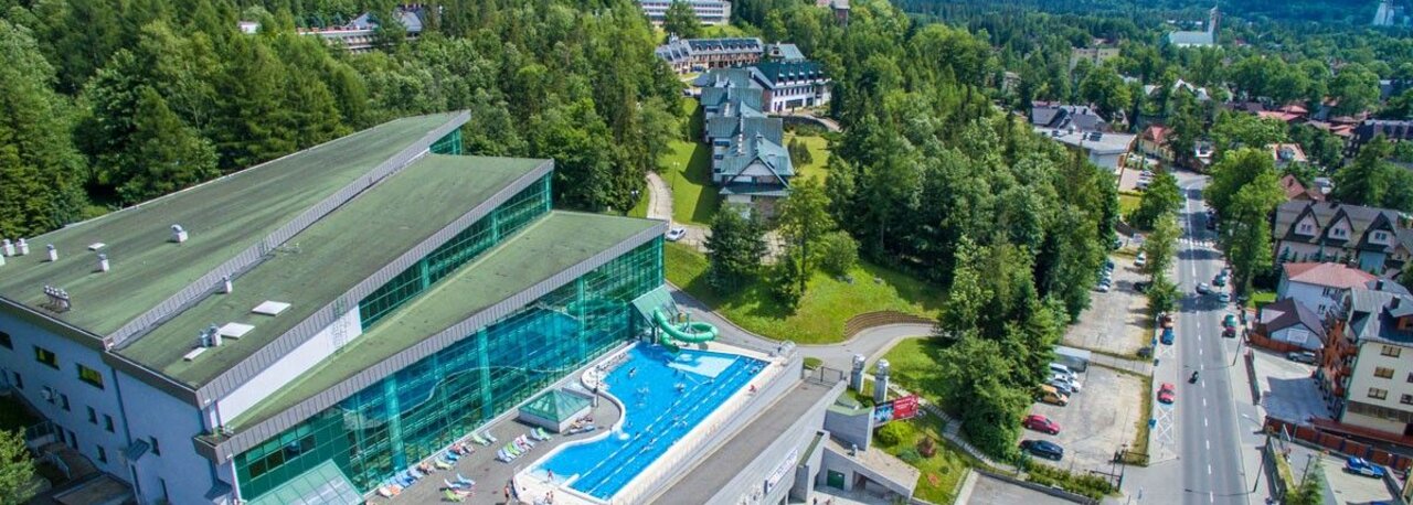 Basen zewnętrzny o powierzchni 390,8 m2 i temperaturze wody 28,5 oC. Z basenu zewnętrznego położonego na tarasie rozciąga się widok na Tatry Zachodnie i Giewont. Położony wewnątrz budynku basen rekreacyjny stanowi idealne miejsce wypoczyku dla całych rodzin - wyposażony jest w liczne urządzenie do hydromasażu: bicze wodne, kaskady oraz leżanki podwodne.