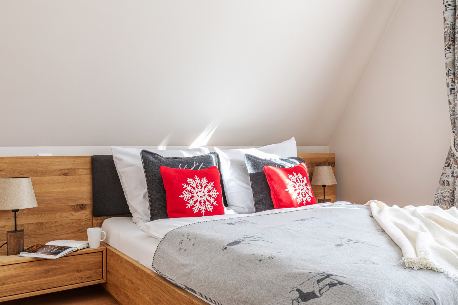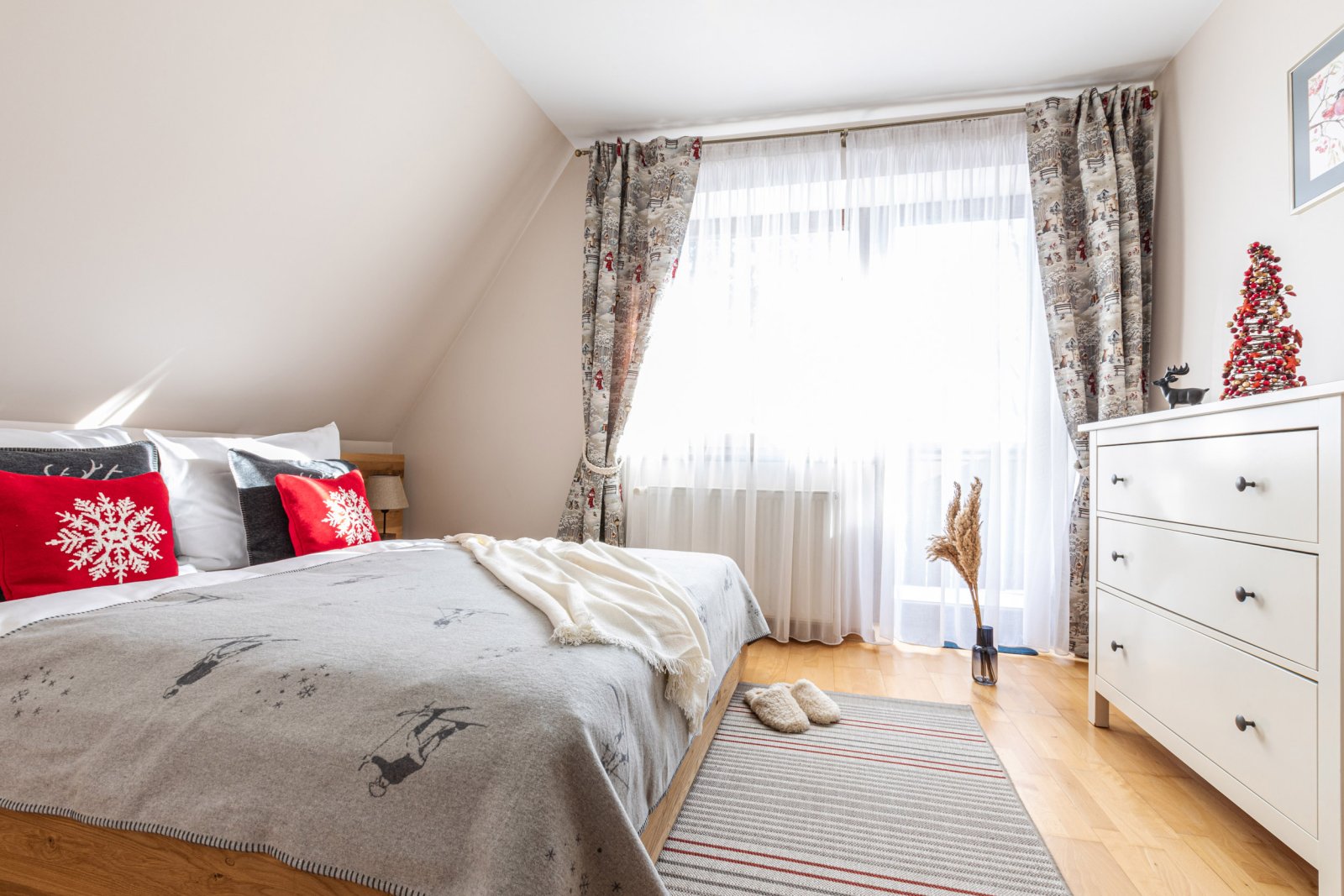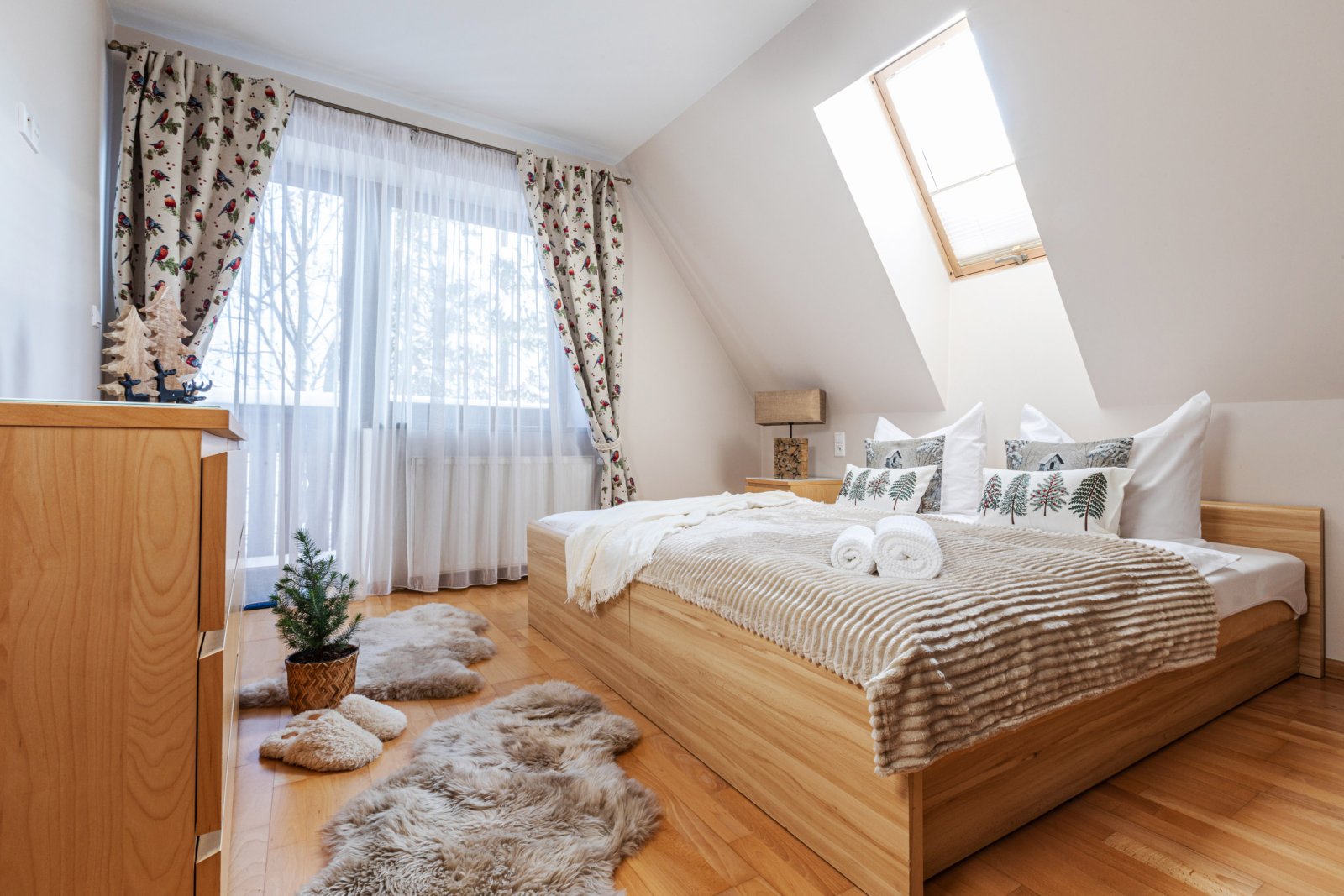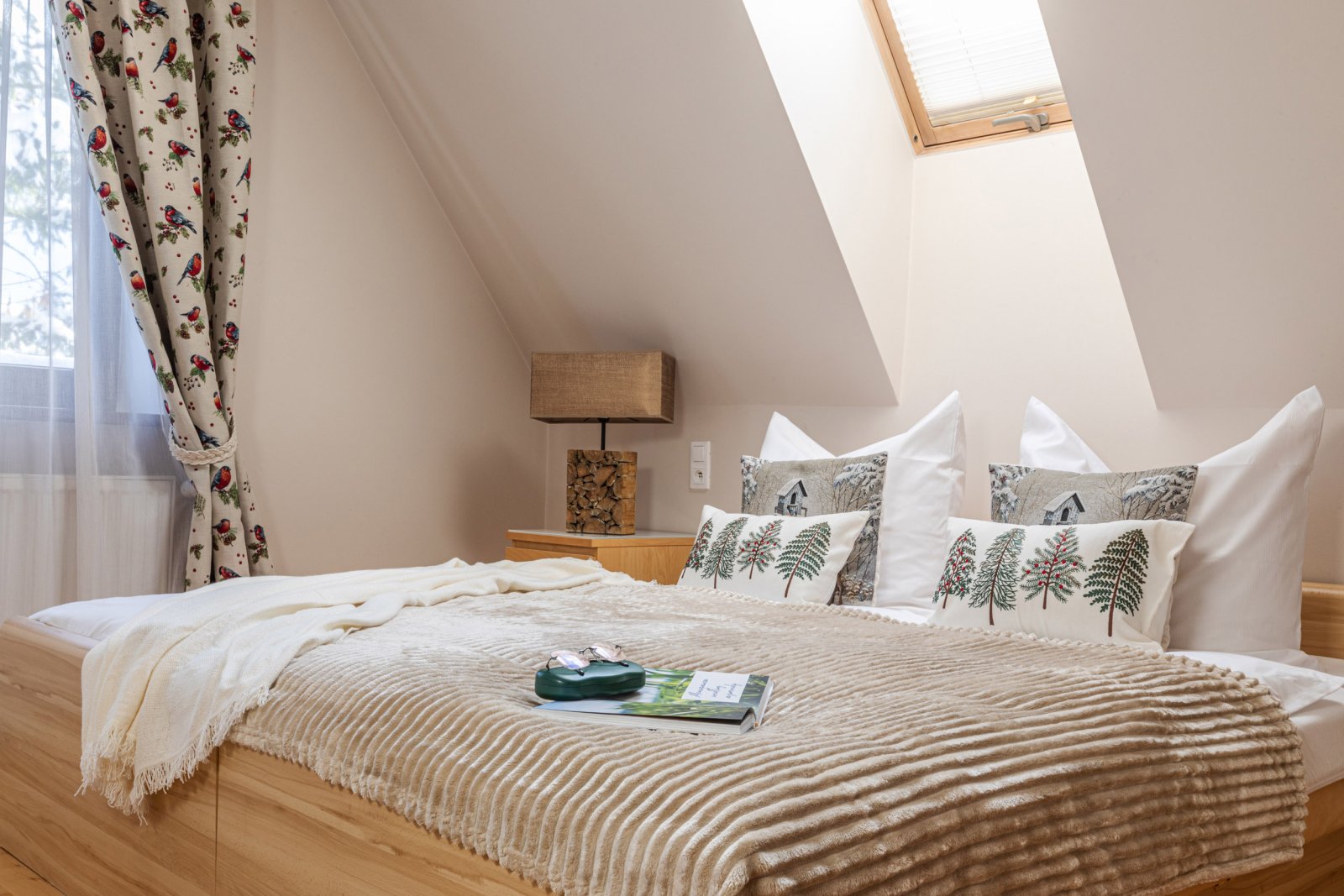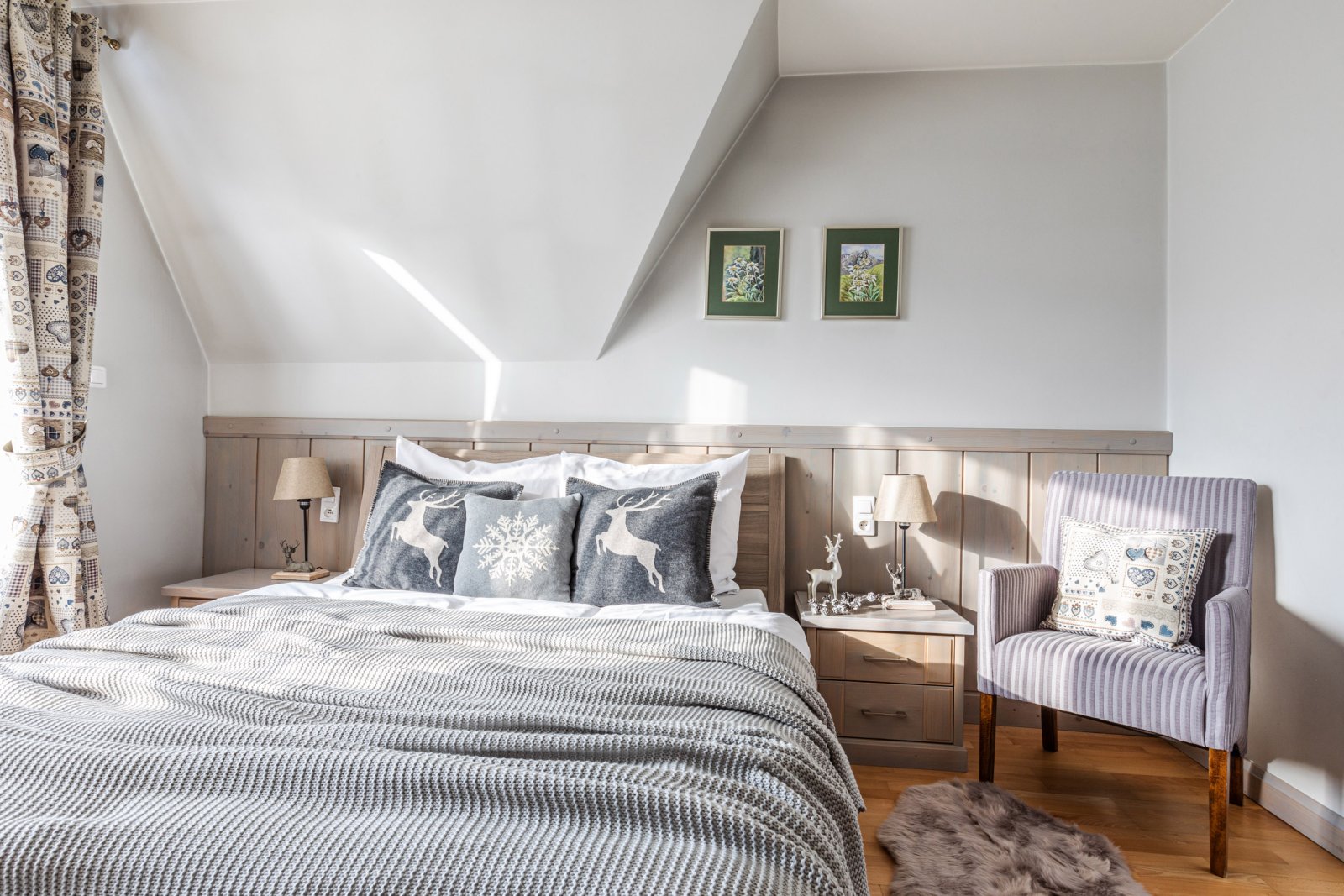 - Sypialnie: pięć sypialni (cztery dwuosobowe i jedna trzyosobowa, trzy z balkonami z widokiem na Tatry);